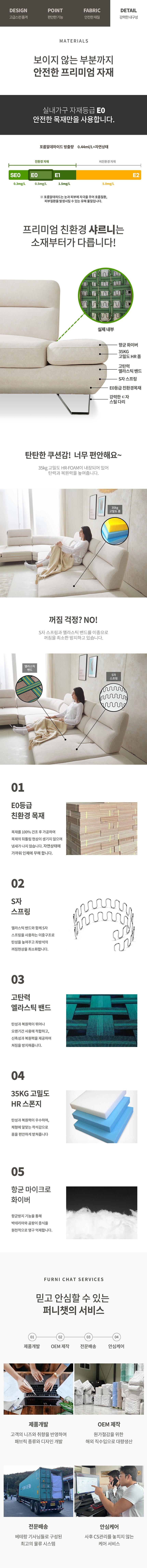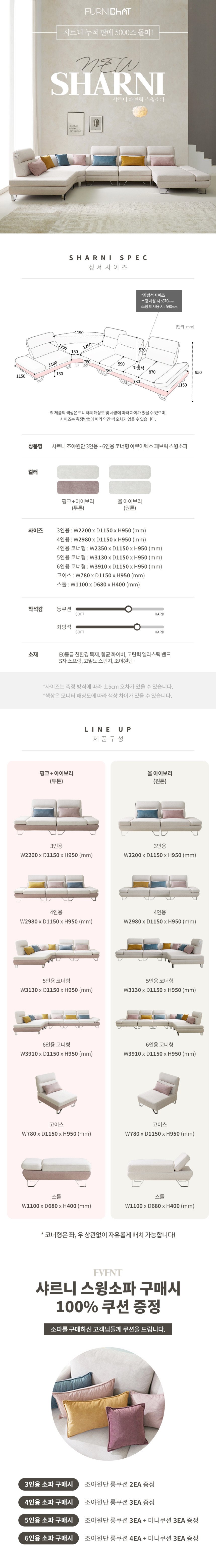 샤르니 4인용 직선형 소파 핑크+아이보리