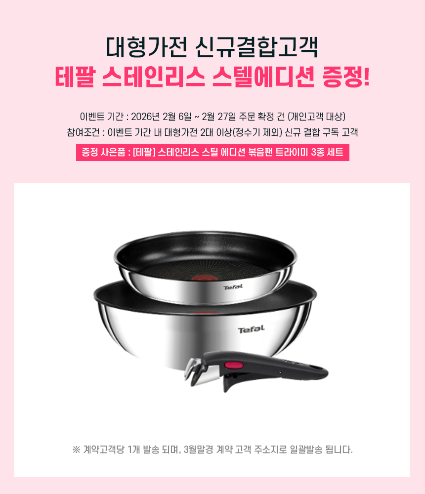 대형가전 2대 이상 결합 렌탈 시 테팔 스테인리스 스텔에디션 증정+이불걸이 증정 !